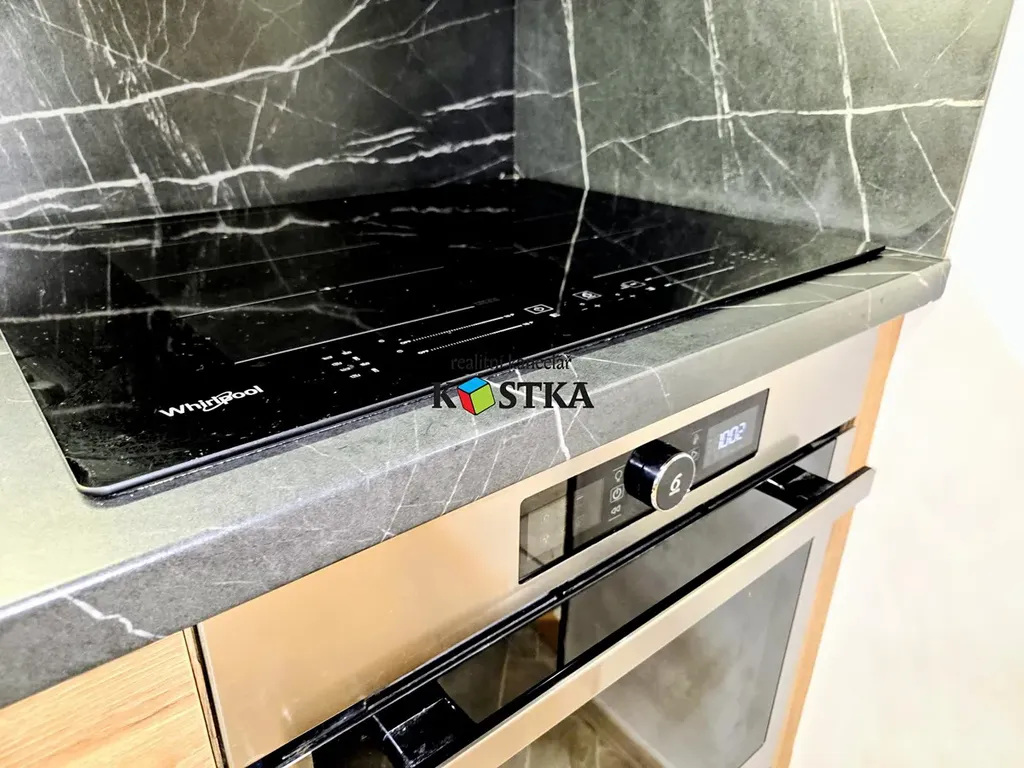 V kuchyni najdete velmi hezkou a praktickou kuchyňskou linku s vestavěnými spotřebiči. V koupelně je mimo vany a umyvadla i prostor na pračku a sušičku.