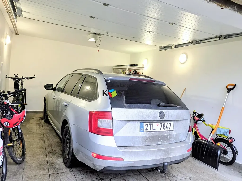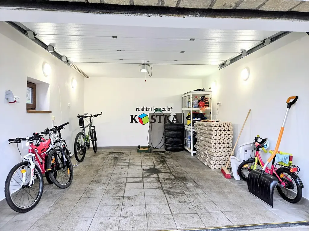 V suterénu je garáž se sekčními vraty na dálkové ovládání, do které je přivedena voda a elektřina. Sezónní věci je možné skladovat v suterénu, kde jsou k dispozici další prostory.