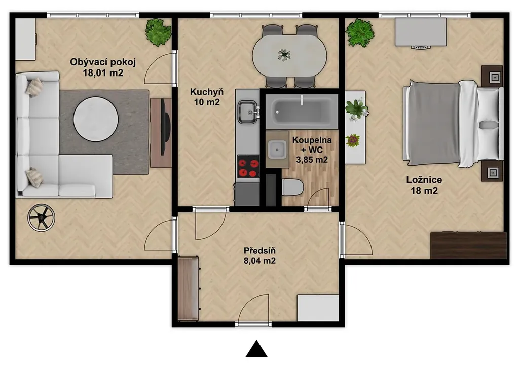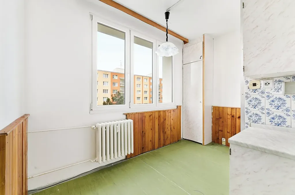 Byt je v původním stavu – s umakartovým jádrem, původními podlahovými krytinami (PVC) a kuchyňskou linkou se špajzem, která je určená k výměně. A právě to z něj ale dělá skvělý základ pro vlastní řešení.