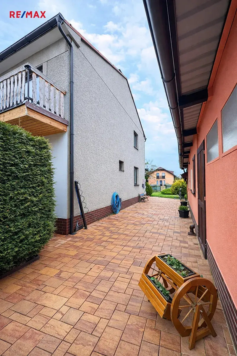 Velkým benefitem je rozlehlá okrasná zahrada, která poskytuje dostatek prostoru pro relaxaci, rodinné posezení, dětské hry i zahradničení. Součástí pozemku je také dřevěná garáž s dílnou.