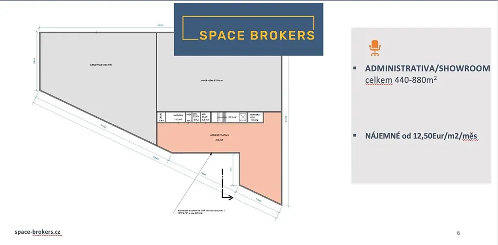 - Showroom/Administrativa - 12,50 EUR/m2/měsíc