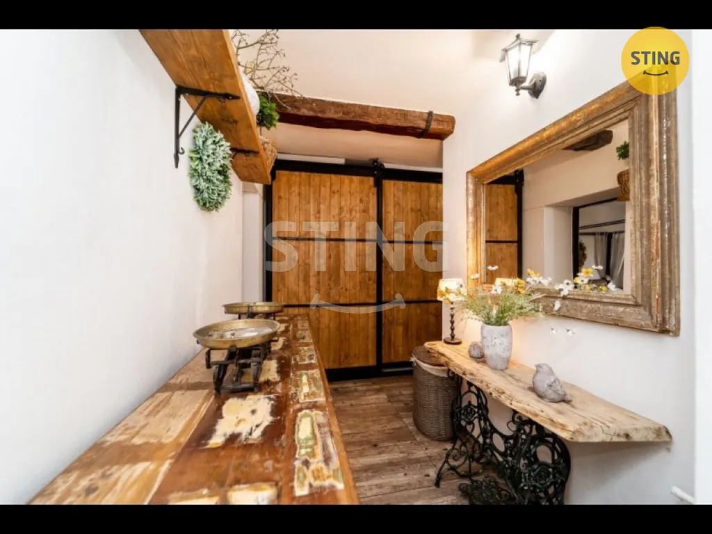 Milovníky masivního nábytku potěší, že stylové vybavení, které dotváří jedinečnou atmosféru bytu, je součástí prodeje.