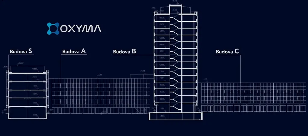 - až 8.500 m2 prostor pro administrativu či lehkou výrobu a 5.500 m2 administrativy včetně sociálního zázemí + 1.500 m2 společných prostor