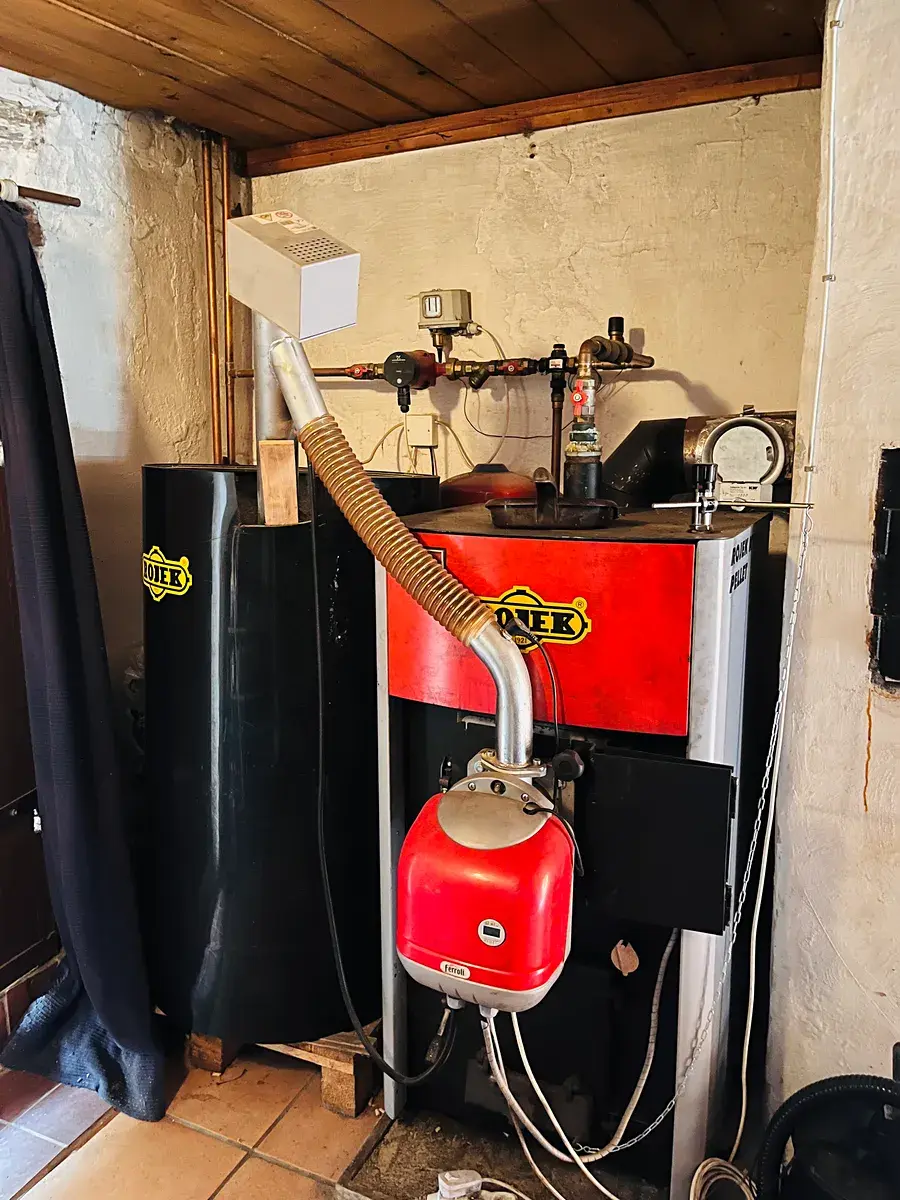 Jako poslední bylo před třemi roky zdokonaleno ústřední topení, dovybaveno automatickým peletkovým kotlem se zásobníkem. Na tento způsob vytápění navazuje dále cihlový krb a jsou zde také malá kamna k rychlému roztápění v dobách tuhých zim.