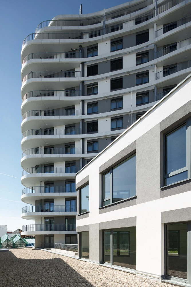 Krásný byt se saunou, samostatně stojící vanou a bidetem. Rozlehlý obývací pokoj s obloukovou stěnou, stylovým barem na míru a venkovními žaluziemi. Navíc unikátní terasa v obloukové křivce.