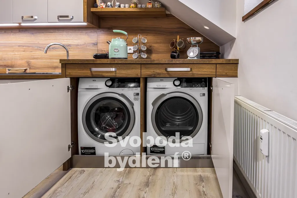 Celý byt navozuje útulnou a stylovou atmosférou díky citlivé a praktické promyšlené rekonstrukci včetně jeho současného vybavení, jež je možné v bytě ponechat. Plastová okna v dekoru zlatého dubu jsou s izolačním trojklem, střešní okna Velux jsou opatřena protislunečními roletkami. Celková podlahová plocha bytu je 64,2m2 plus komora 2,3m2 na stejném podlaží u výtahu. Byt je pečlivě udržovaný a vkusně vybavený moderním nábytkem.