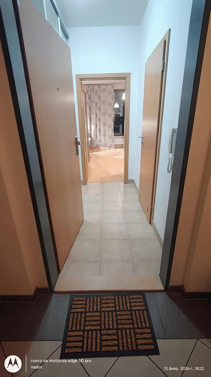 Dispozice bytu tvoří světlý obývací pokoj s kuchyňským koutem, koupelna s vanou a WC, vstupní chodba s vestavěnou skříní a balkon orientovaný do klidného prostředí.