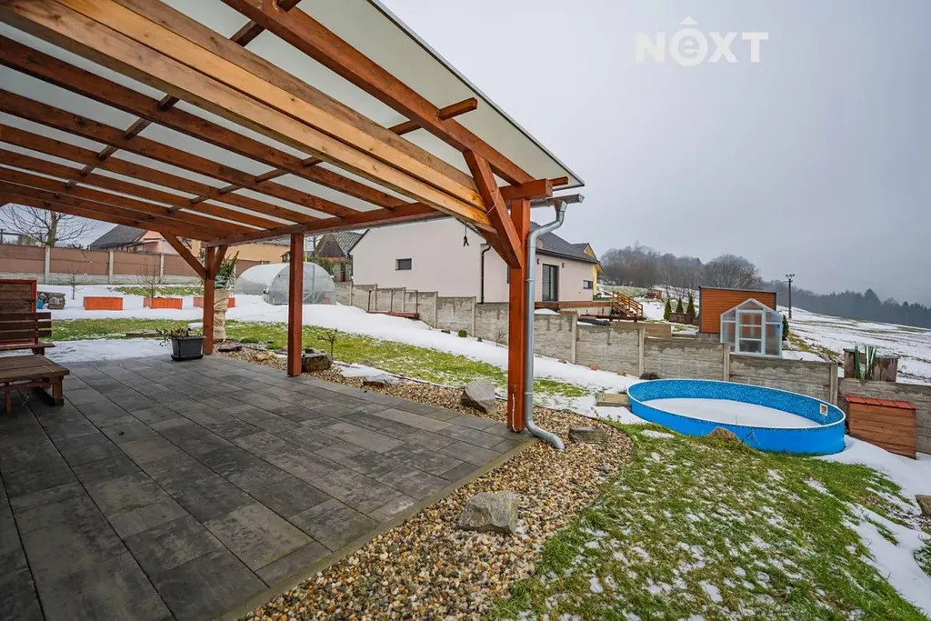 Na pozemku se nachází kulatý bazén, skleník a kůlna. Celý pozemek je oplocen betonovým plotem, který zajišťuje dostatek soukromí i bezpečí.