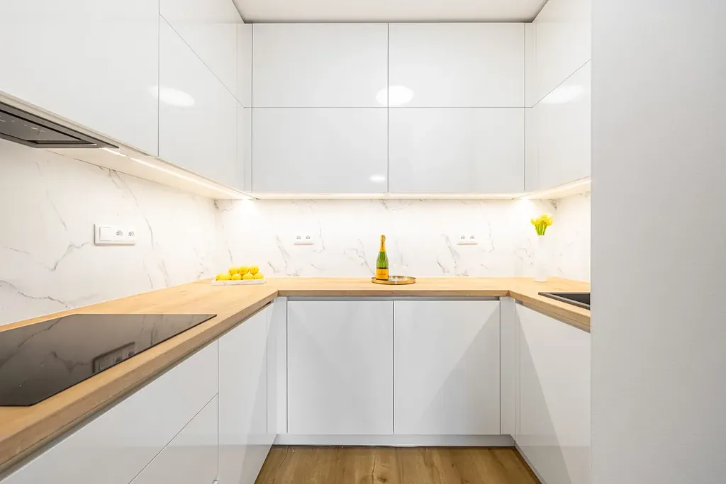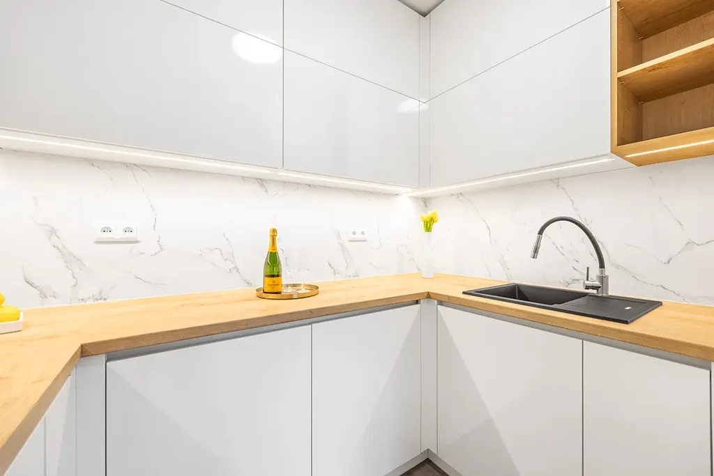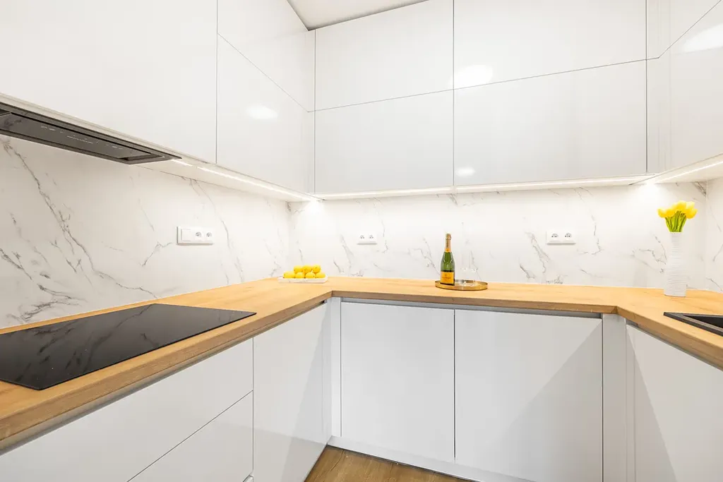 - nová kuchyňská linka vyrobena na míru se spotřebiči (značková elektrická trouba, myčka, indukční deska, digestoř, osvětlení, dřez)