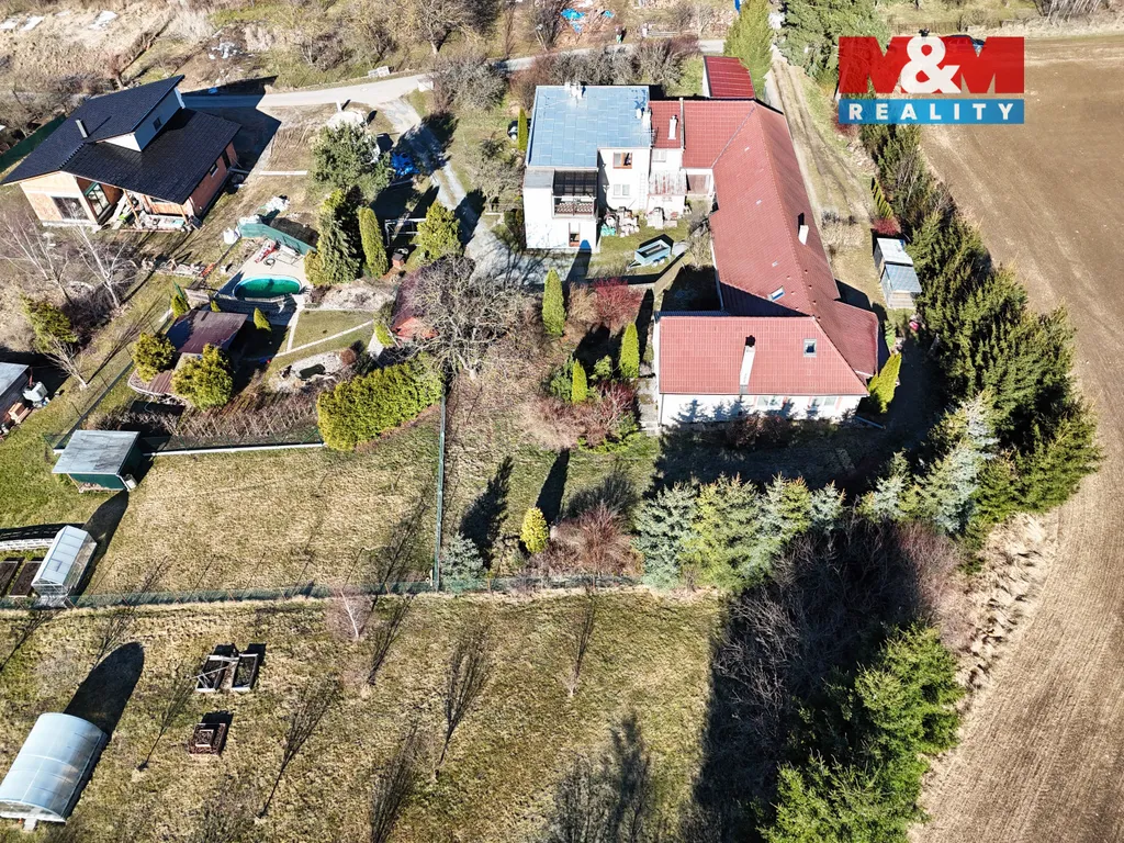 Celková plocha parcely činí 1 341 m2 a zahrnuje oplocený pozemek s garáží a dalšími prostory jako půda. Dům se nachází na klidném okraji obce, blízko přírody, přičemž obec poskytuje kompletní občanskou vybavenost.