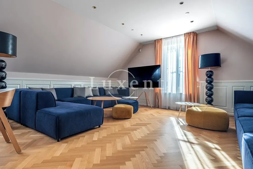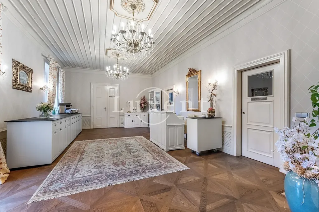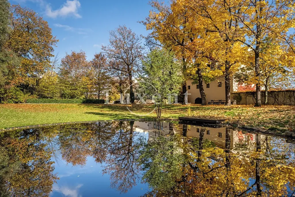 Srdcem této výjimečné rezidence o užitné ploše 1 585 m² je noblesní hlavní sál s krbem, který vytváří hřejivou a zároveň majestátní atmosféru – ideální pro rodinná i společenská setkání. Ze sálu je přímý vstup na terasu plynule navazující na rozlehlou zámeckou zahradu (4 253 m²) s jezírkem (1 536 m²), altánem a fontánou.