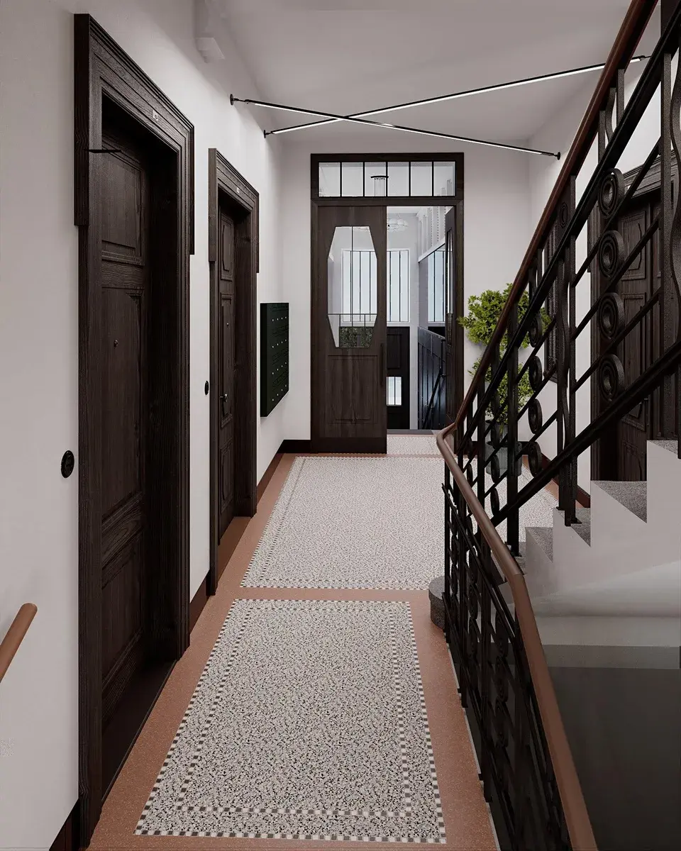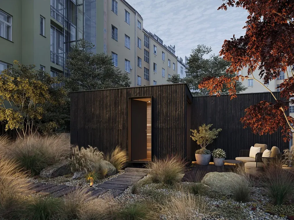 Dům po kompletní rekonstrukci má reprezentativní společné prostory, moderní výtah, repasované kamenné schodiště se zdobným zábradlím a nové technické zázemí. Rezidentům je k dispozici sauna a ve vnitrobloku pak klidné místo k posezení mezi zelení. Dům stojí v tiché části ulice Heřmanova na Letné – v místě, kde se setkává městský život s klidem. Jen pár kroků odtud se otevírá Stromovka i Letenské sady, zatímco v okolí najdete oblíbené kavárny, bistra a designové obchody. V docházkové vzdálenosti je Národní galerie, obchodní centrum Stromovka i veškeré služby pro každodenní život. Na Strossmayerovo náměstí dojdete za pět minut, metro Vltavská je v dosahu osmi minut chůze a do centra Prahy se dostanete MHD během dvanácti. Letná nabízí rovnováhu – městskou energii i prostor pro zklidnění tempa. Heřmanova 24 stojí přesně uprostřed.