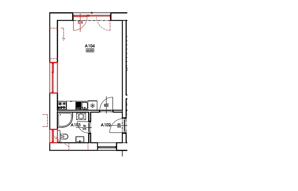 Byty jsou vybaveny praktickou kuchyňskou linkou, která sahá až ke stropu, a která je vybavená sklokeramickou varnou deskou a elektrickou troubou. Místnost je zakončená francouzským oknem s výhledem do zeleně. Na okně jsou namontovány předokenní žaluzie, které v místnosti zajistí ticho a tmu.