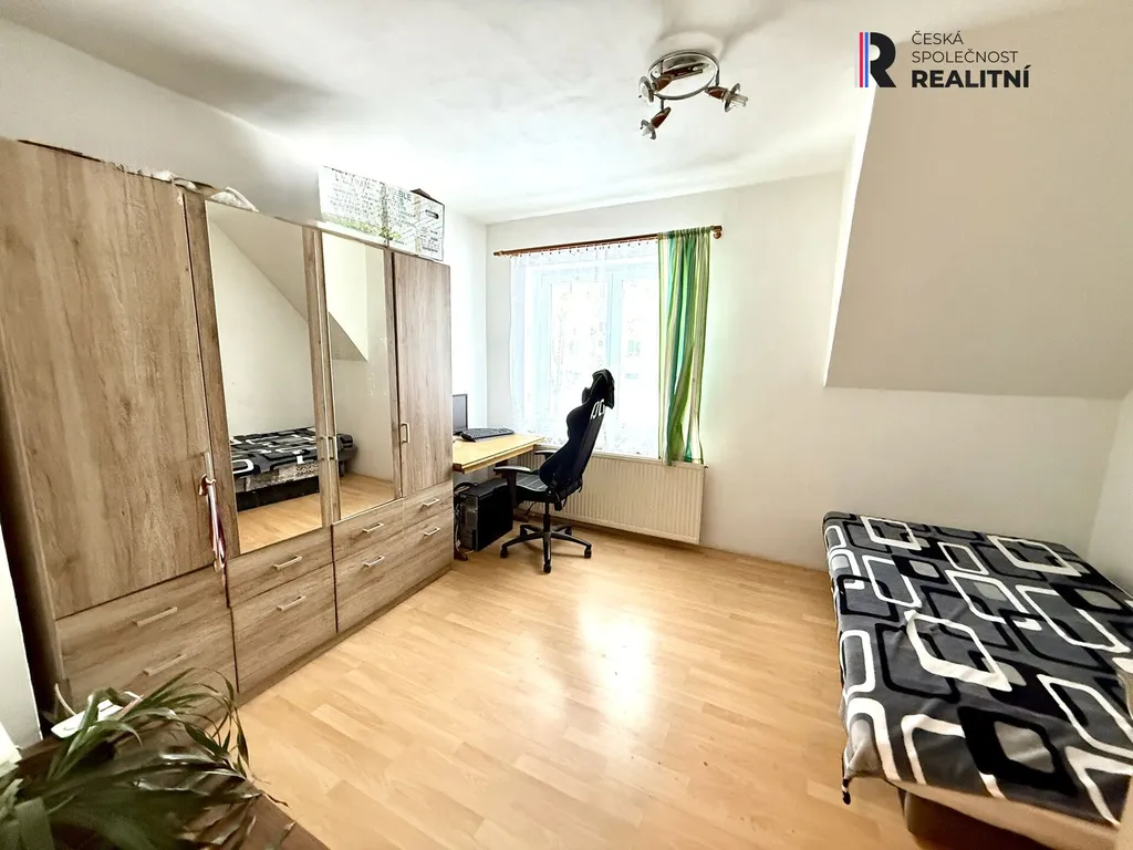 Do patra vedou schody z předsíně. V horním podlaží se nachází chodba, dvě ložnice, vstup na terasu a také půdní prostor, který může sloužit jako úložné zázemí nebo nabízí potenciál pro další využití.