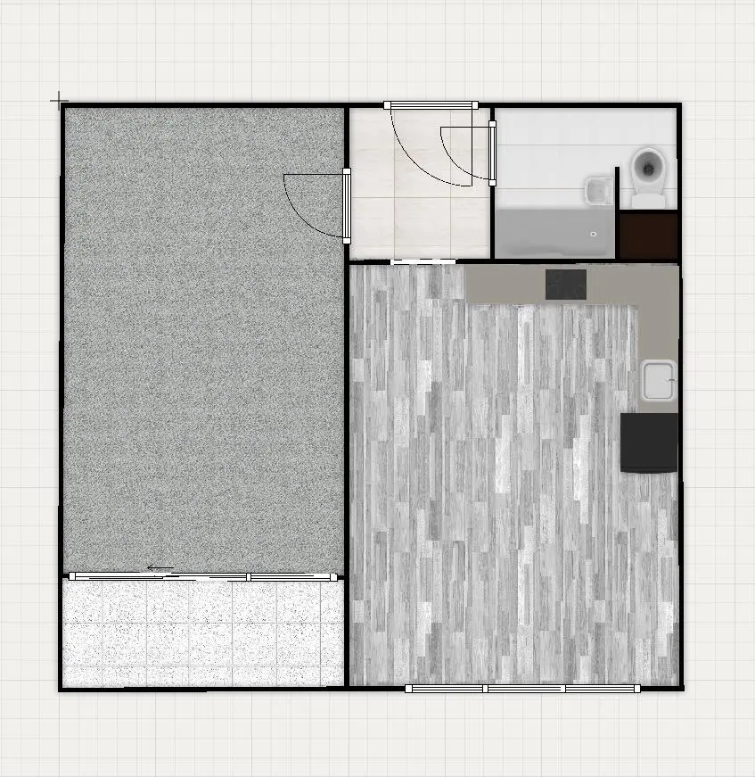 Obývací pokoj: Rohová kuchyňská linka s vestavěnou elektrickou troubou a elektrickým sporákem (indukční). Na podlaze je plovoucí podlaha. Kuchyňská linka je vybavena volně stojící pračkou a lednicí s mrazákem. Okno v obývacím pokoji je vybaveno elektronicky ovládanou venkovní žaluzií.