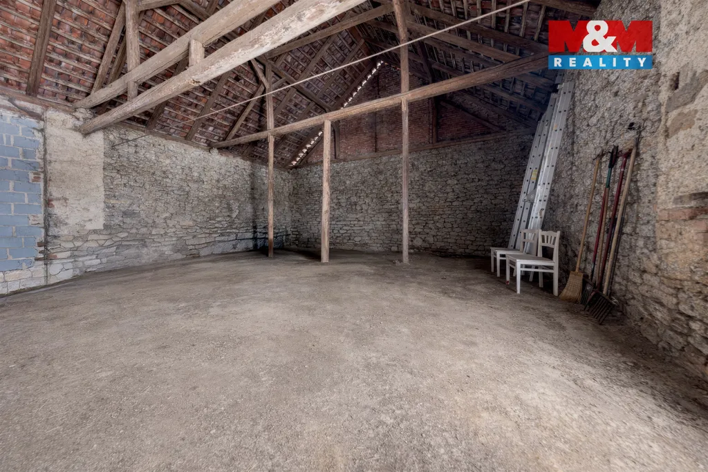 80 m², zahrnující garáž, dílnu a původní chlévy. Dominantou nemovitosti je prostorná stodola o rozloze 210 m², která nabízí nekonečné možnosti využití a to od pořádání svatebních oslav, kulturních akcí, až po sbírku unikátních automobilů či jiné kreativní projekty. K nemovitosti náleží rozlehlý pozemek, který zajišťuje soukromí a prostor pro rozvoj vašich představ. Romantické kouzlo usedlosti podtrhuje nádherný výhled na západ slunce, ideální pro chvíle s rodinou či přáteli při skleničce vína.