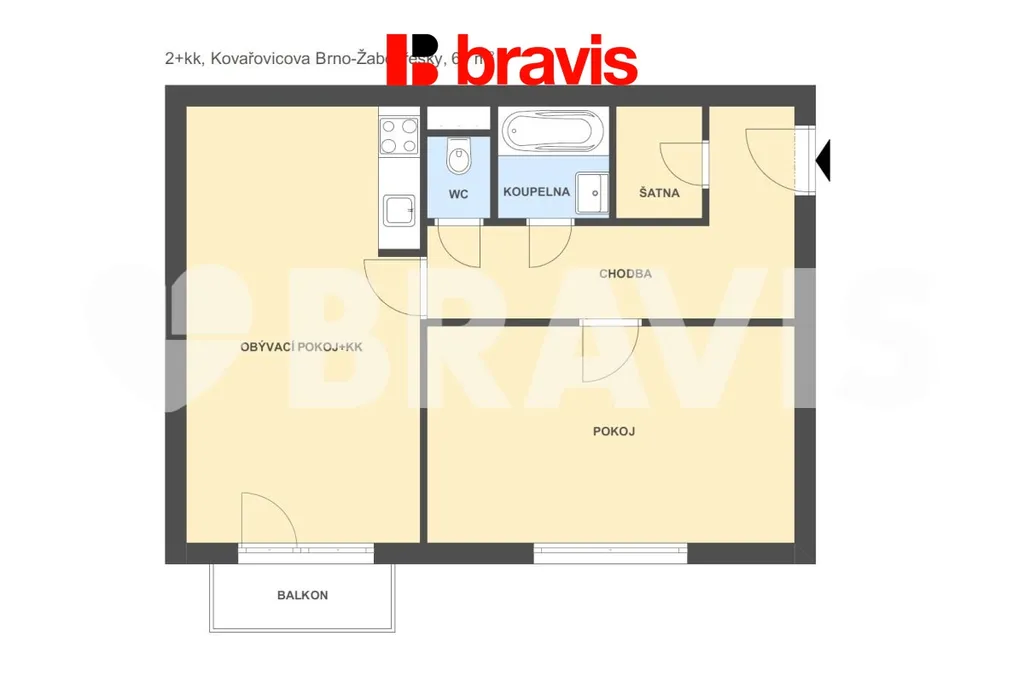 Pronájem bytu 2+kk, Brno, Kovařovicova, 61 m2 (ID: 2083646)