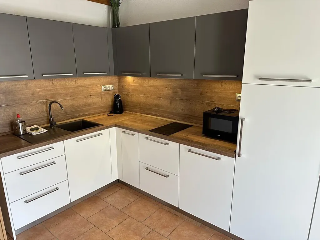 Byt je po rekonstrukci, vybaven novou kuchyní, moderním osvětlením a nábytkem. Prostorná terasa je ideální pro snídaně s výhledem na moře, zatímco zadní terasa nabízí klidný soukromý kout v zeleni.