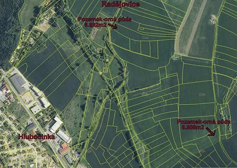 Ve výhradním zastoupení si vám dovolujeme nabídnout dva pozemky určené k zemědělským účelům, druh pozemku na listu vlastnictví orná půda o celkové ploše 15.800m2 v katastrálním území Radějovice v obci Radějovice Praha Východ. Jedná se o 2 pozemky o velikosti 8.992m2 a 6.808m2. Příjezd k pozemkům je po polní cestě.