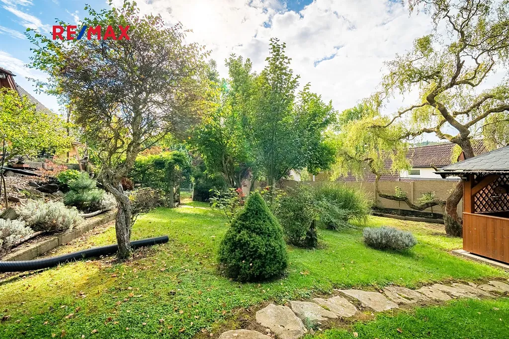 Nádherná, vzrostlá zahrada obklopující pozemek vás uchvátí a zajistí naprosté soukromí. Najdeme zde dřevěnou pergolu, kde je možno vybudovat venkovní kuchyň a nabízí tak místo ke grilování a posezení s přáteli.