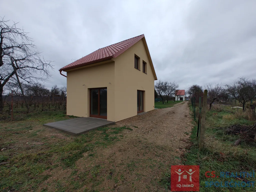 V zastoupení majitele nabízíme k prodeji 3+kk dům v klidné části města Znojma u Nové nemocnice. Jedná se o novostavbu umístěnou v zahradě o výměře 690m2, s velmi dobrou dostupností zastávka MHD u Nové nemocnice 450m, Penny 950m, do centra města Znojma pěšky 1,8km. V přízemí je obývací pokoj s kuchyní, koupelna s wc, v patře dva prostorné pokoje a samostatné wc. Vytápění v domě je elektrické podlahové, a pomocí tepelného čerpadla vzduch - vzduch, které v zimě topí a v letě chladí. Díky tomuto vytápění a kvalitnímu zateplení a použití oken s izolačními trojskly má dům PENB - B, tedy náklady na provoz domu minimální. Na pozemku je možné postavit vedlejší stavbu až 25 m2 a následně tím rozšířit dům na 4+kk.
