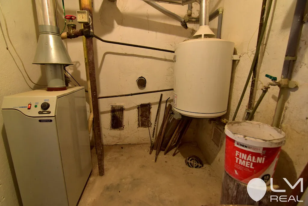 Vytápění topné soustavy je zajištěno plynovým kotlem, ohřev vody zajišťuje bojler. K dalšímu zdroji vytápění se nabízí využít druhého komína a instalovat např. dnes žádaná kamna.
