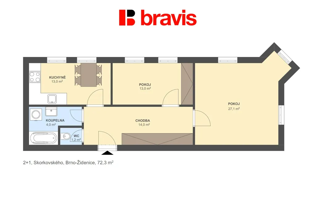 Prodej bytu 2+1, Brno, Skorkovského, 72 m2