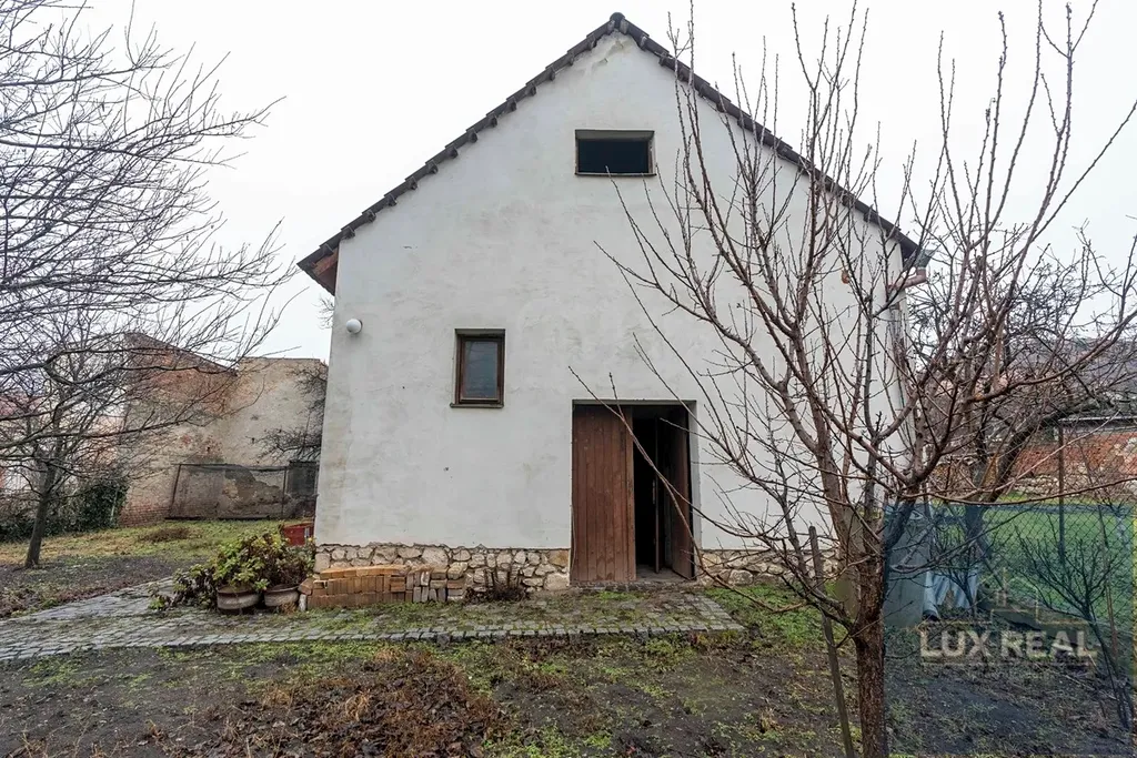 Pozemek o rozloze 1158 m² nabízí další možnosti využití včetně sýpky, přístavků a sklepních prostor. Vinný sklep je umístěn v zadní části zahrady, umožňuje, jak příjemné posezení přímo nad sklepem, ale i pro vinaře prostory pro zpracování vína.
