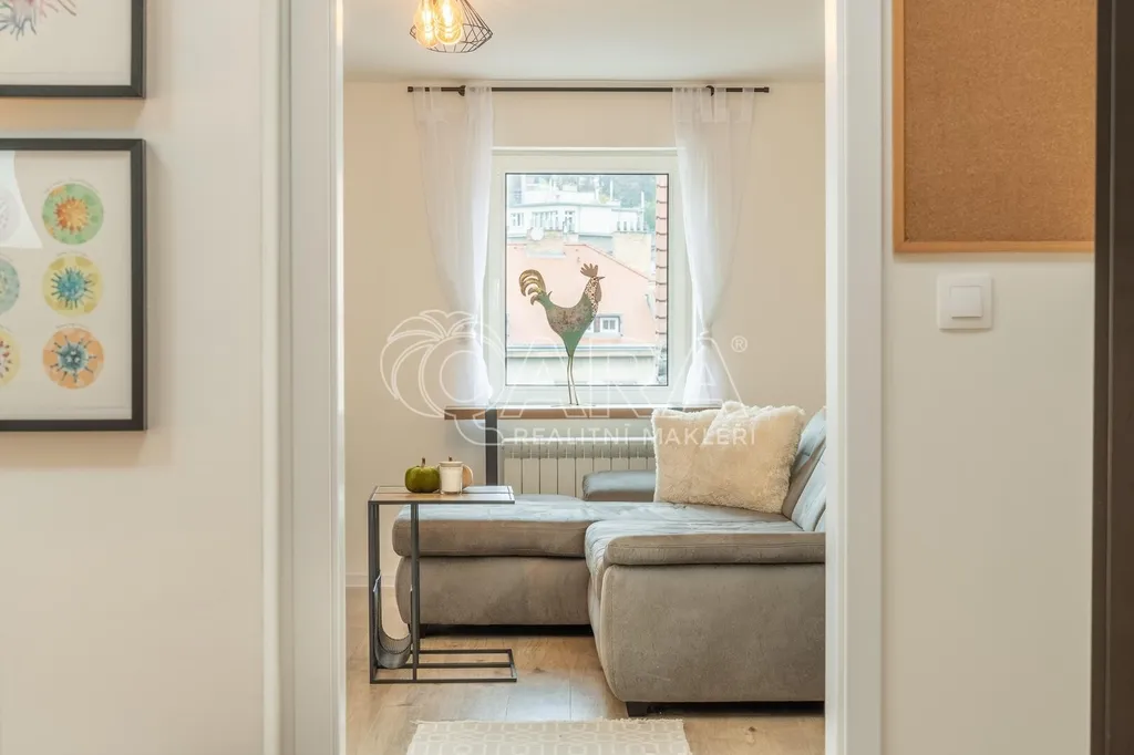 V zastoupení vlastníka vám nabízím k prodeji krásný, plně zařízený byt o dispozici 2+kk a rozloze 48,1 m2. Byt je umístěn ve 2. patře renovovaného bytového domu bez výtahu. Jednotka sama o sobě má příjemnou vzdušnou dispozici, minimalistický čistý design a je prodáván s kompletním vybavením tak, že už si stačí vzít jen kartáček na zuby a můžete zde bydlet. Budoucí obyvatele jistě potěší i fakt, že je v bytě instalována klimatizace, takže letních veder se nemusíte vůbec obávat.
