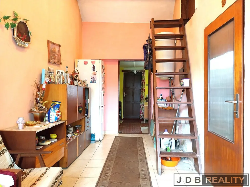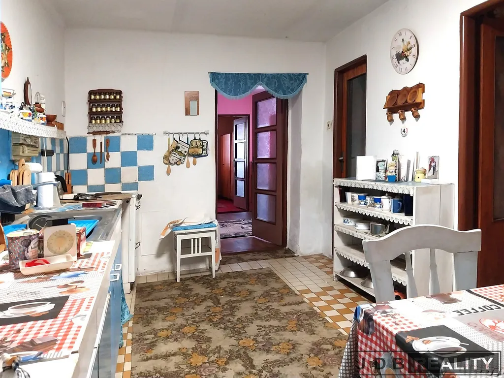 Dům, který je určen ke kompletní rekonstrukci je přístupný z ulice přes malý dvůr, který lze využívat také pro parkování. K domu je také možný přístup přes sousední pozemek (3400 m²), který je využíván jako příjezd do garáže. Přízemní dům se sedlovou střechou tvoří velká chodba, ze které se dostaneme do kuchyně a dále do dalších dvou pokojů. Z chodby je dále přístup do posledního velkého pokoje, ze kterého je přímý vstup na zahradu. V domě je také koupelna s vanou a wc, a z kuchyně přístupná spíž. Vytápění domu je v současnosti řešeno kotlem na tuhá paliva. Ohřev vody je zajištěn elektrickým bojlerem. Dům je napojen na elektřinu, obecní vodovod a kanalizaci. K domu je přivedena přípojka plynu, která není v současnosti využívána.
