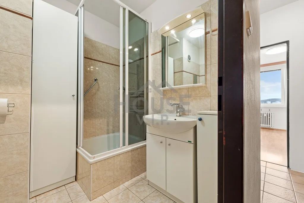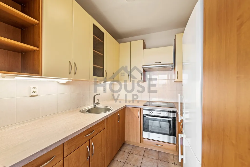 Nabízíme světlý družstevní byt 2+kk o velikosti 43 m² s komorou 4 m² v 9. patře kompletně revitalizovaného domu v žádané části Praha 4 – Modřany (ulice Krouzova).