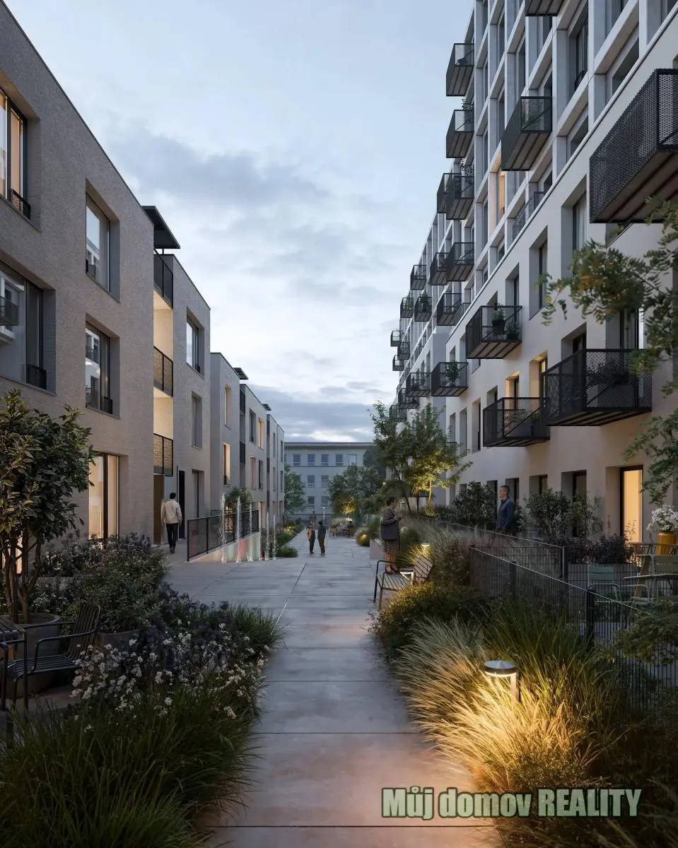 který tvoří moderní townhousy spojující komfort rodinného domu s výhodami městského bydlení.