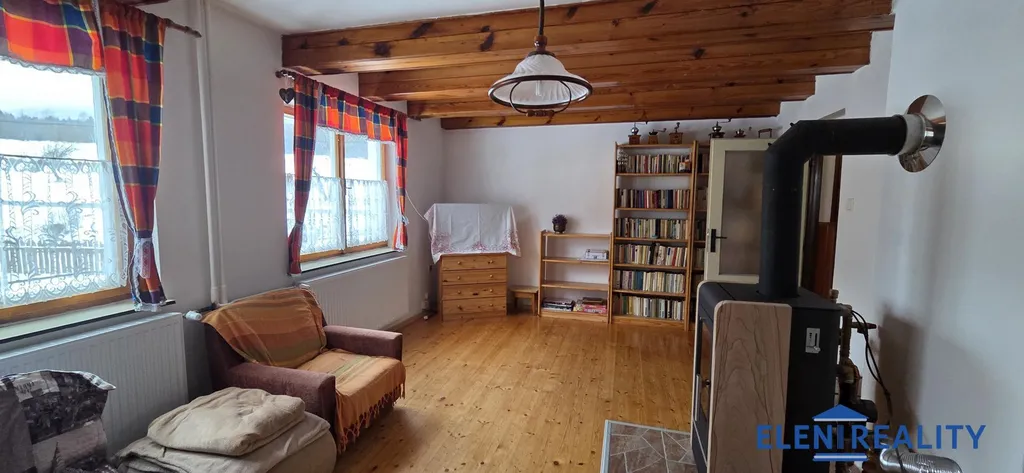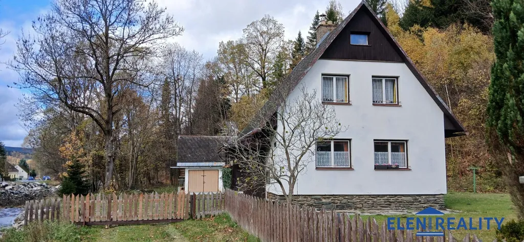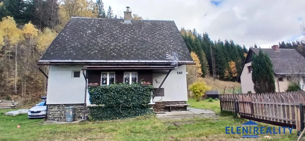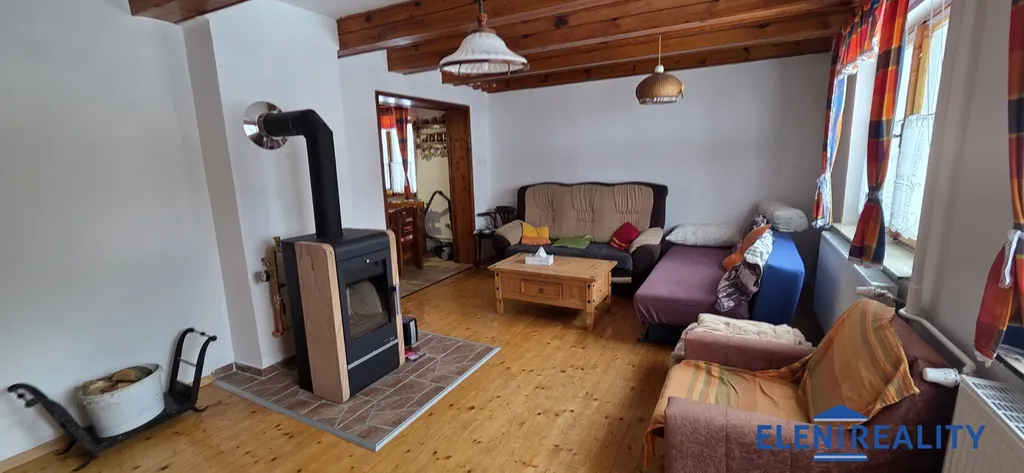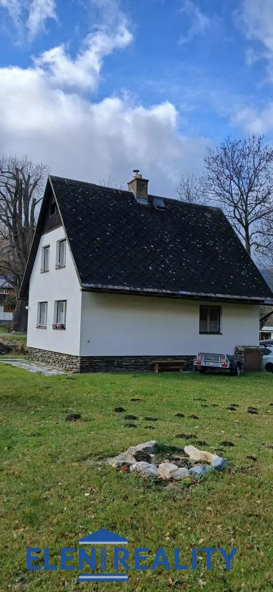 Ať už si hledáte místo k trvalému bydlení nebo místo, kde můžete s rodinou trávit čas nejen o víkendech, nebo hledáte prostě investiční chalupu ke krátkodobému pronájmu, naše nabídka v Domašově Vás jistě zaujme. Exkluzivně nabízíme k prodeji rodinný dům s vedlejší stavbou a krásnou, rovinatou zahradou v klidné části obce Bělá pod Pradědem-Domašov , cca 4 km od známého Skiareálu Filipovice a 7 km od města Jeseník. K domu náleží pozemek o celkové výměře 1059 m2 z toho zastavěná plocha a nádvoří rodinného domu činí 60 m2 a zastavěná plocha a nádvoří vedlejší stavby činí 36 m2. Dům je velmi útulný, proběhla na něm částečná rekonstrukce a nabízí možnost okamžitého užívání dispozice 4+1 (možnost rozšíření o půdní prostor). Budova je zděná, má dvě nadzemní podlaží a je z větší části podsklepená. Ústřední vytápění zajištuje nový elektrokotel ( instalace 2025) s možností ovládání přes wifi a nová krbová kamna s teplovodním výměníkem ( instalace 2025), komín je nově vyvložkovaný. Ohřev vody elektrickým bojlerem, elektřina 230/400 - (snížená sazba nočního proudu), voda ze studny, kanalizace do septiku, přístup po obecním pozemku. Dispozice: 1. NP: vstupní dřevěná veranda, chodba, koupelna se sprchovým koutem , samostatné WC, obývací pokoj propojený s kuchyní. Po dřevěném schodišti s podestou se dostanete do 2.NP, kde se nachází 3 pokoje a vstup na půdu. Součástí prodeje je i vedlejší stavba s garáží, letní kuchyní a dílnou a nevyužitým podkrovím, která nabízí např. vybudování welness. Krásné rovinaté zahradě dominuje zastřešená, dřevěná pergola s venkovním posezením s možností grilování. Jednoznačnou výhodou je umístění objektu v turisticky zajímavé a oblíbené lokalitě Jeseníků ( za zahrady je vidět až na osvětlenou sjezdu ve Filípovicích). K domu k dispozici veškerá stavební dokumentace. Průkaz energetické náročnosti budovy nebyl dodán, proto v souladu se zákonem uvádíme klasifikační třídu G. Pokud máte zájem o více informací a chcete nemovitost shlédnout osobně, domluvte si termín prohlídky s makléřkou Eleni ( volat po 13 hod.)