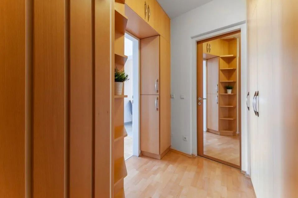 Dispozice moderního bytu nabízí prosvětlený obývací pokoj s přímým vstupem na jihovýchodně orientovanou terasu s výhledy na panorama Prahy s posezením, dále samostatná kuchyně, ložnice, prostorná koupelna s vanou, pračka, toaleta, vstupní hala s dostatkem úložných prostor - šatní skříně.