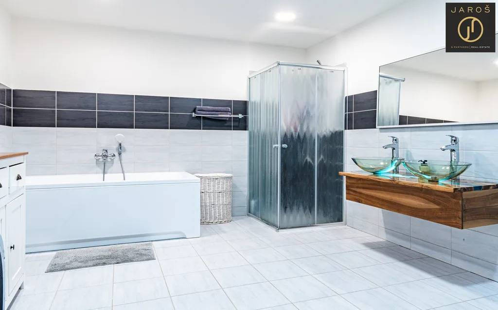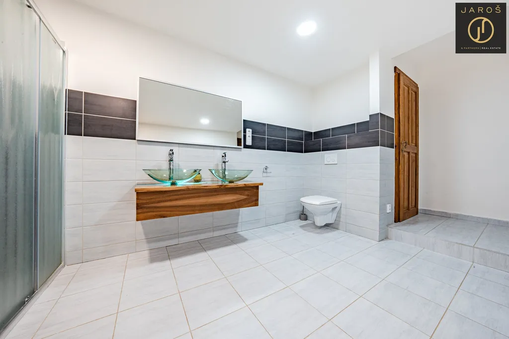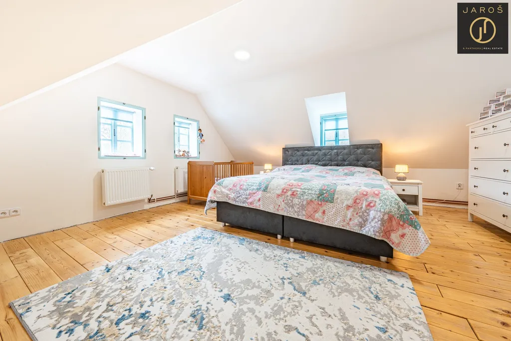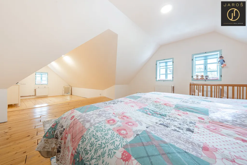 V přízemí se nachází kuchyně s jídelnou o výměře 19,82 m², obývací pokoj 30,7 m², chodba 13,5 m², technická místnost 1,73 m² a prostorná koupelna s WC o velikosti 17,2 m². Stodola o ploše 30,7 m² má samostatný vstup a není z přízemí průchozí s obytnou částí. V obývacím pokoji je připravena možnost vybudování schodiště s přímým vstupem do 2. NP stodoly, kde lze vytvořit další pokoje nebo samostatnou bytovou jednotku. Dům i stodola mají novou střešní krytinu z pálených tašek „bobrovek“ a venkovský charakter doplňují dřevěná okna.