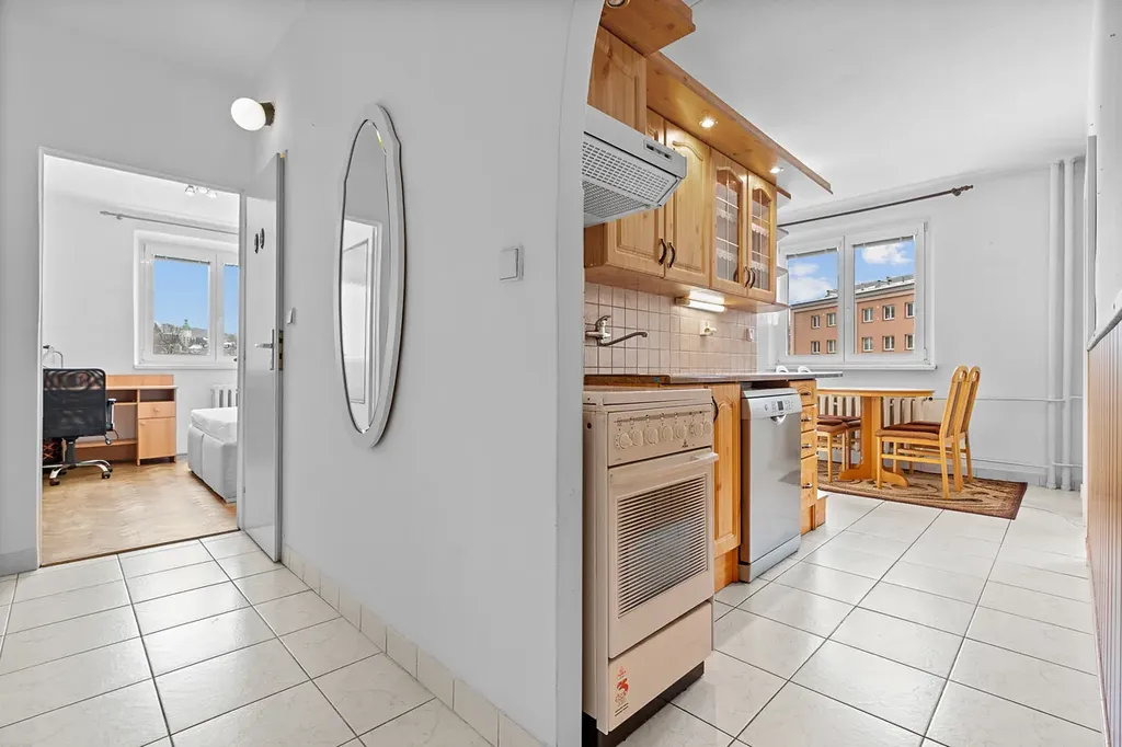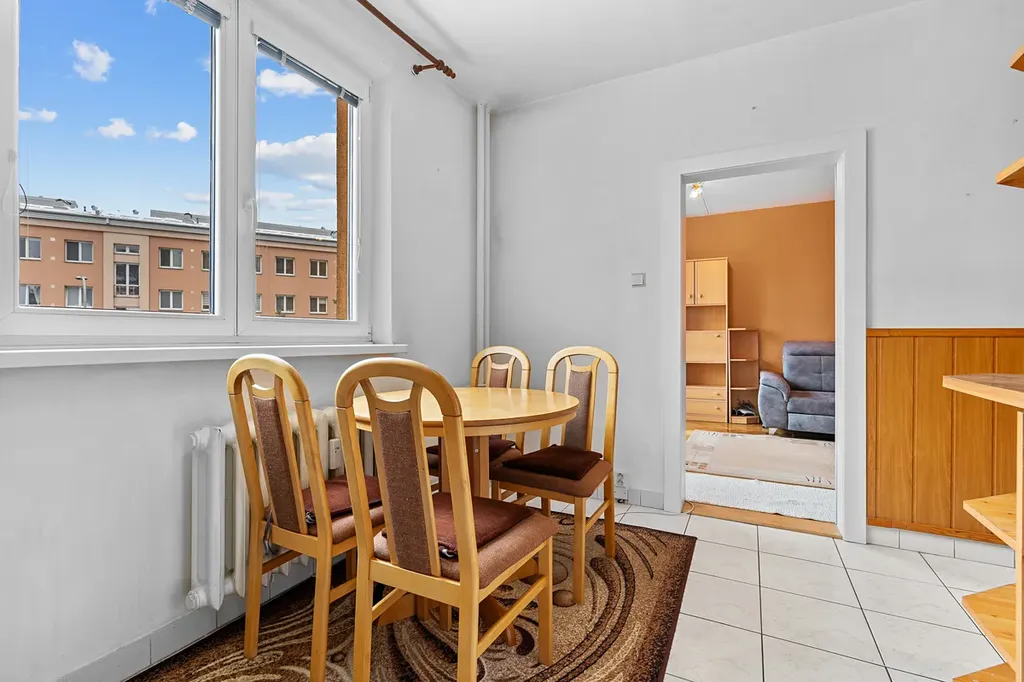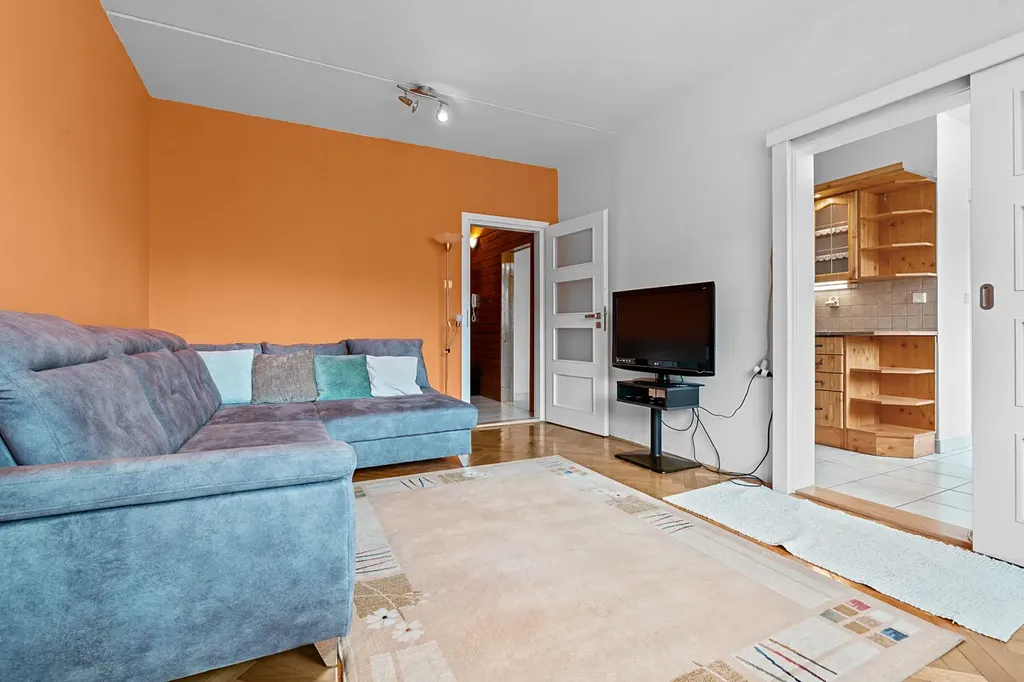 Byt o výměře cca 62 m² je v osobním vlastnictví a nachází se ve 3. nadzemním podlaží panelového domu s výtahem. Díky své dispozici působí velmi prostorně a vzdušně. Nabízí dva neprůchozí pokoje, samostatnou obývací část, kuchyni vybavenou spotřebiči s jídelnou, koupelnu s vanou a pračkou, samostatné WC a praktickou předsíň s úložnými prostory.