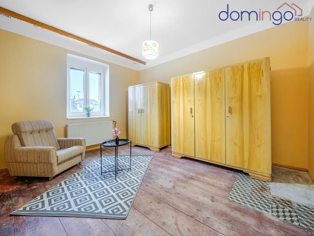 V patře je druhá jednotka o dispozici 3+kk, určená k rekonstrukci. Interiér a elektroinstalace jsou původní, topení je již modernizováno.