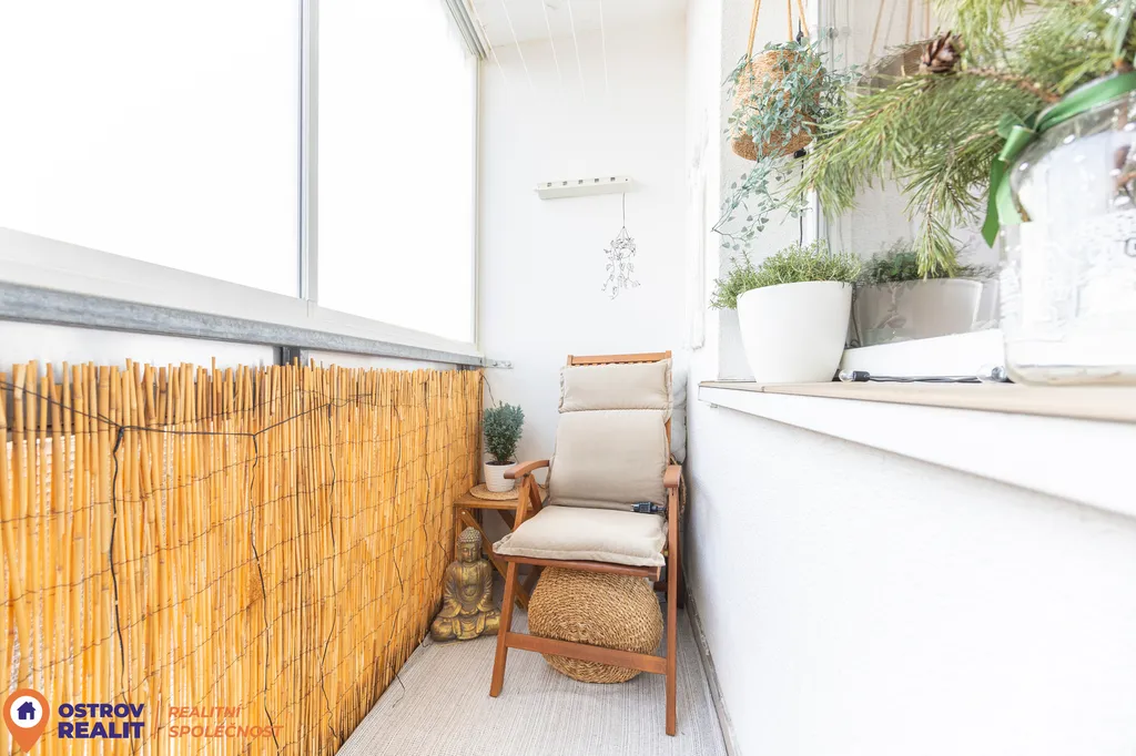 Velkým benefitem bytu je zasklená lodžie a také dostatek úložných prostor – na chodbě se nachází prostorná šatní skříň a dále komora, která je umístěna v mezipatře, takže se nemusíte potýkat s nedostatkem místa pro uskladnění sezónních věcí či domácího vybavení.