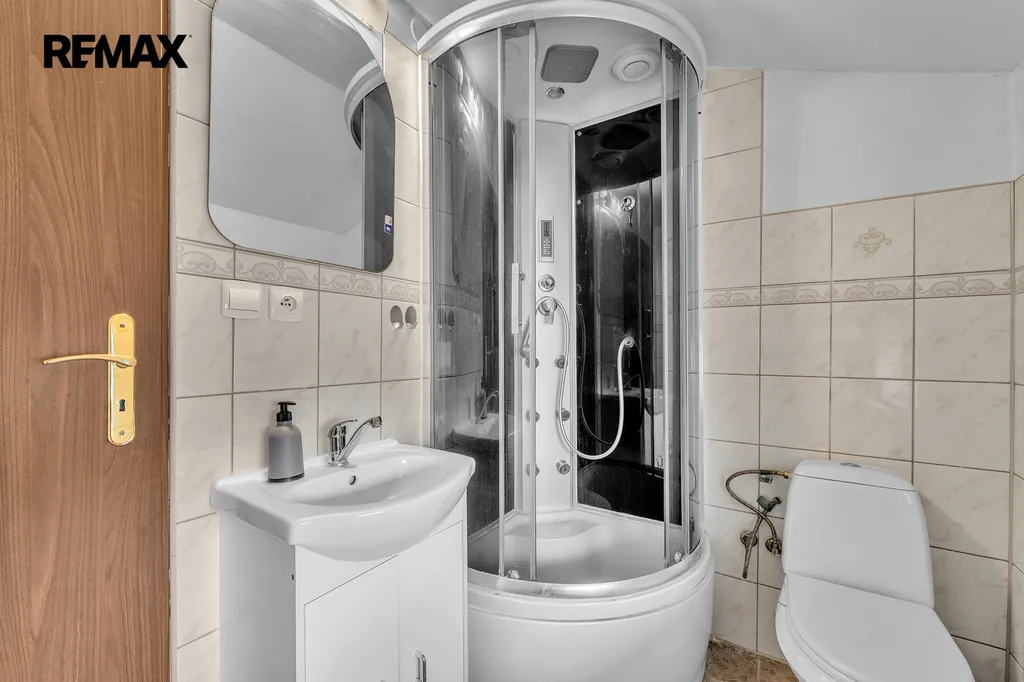 Přízemí: vstupní chodba - možnost vstoupit do technické místnosti s elektrickým kotlem na peletky nebo možno vystoupat do 1. patra nebo možno vstoupit do jídelny. Menší kuchyně se spotřebiči. Koupelna s vanou a toaletou. Obývací pokoj a ložnice. V 1. patře na Vás čekají 2 obytné místnosti, koupelna se sprchovým koutem a toaletou, podkrovní místnosti s charakterem úložných prostor.