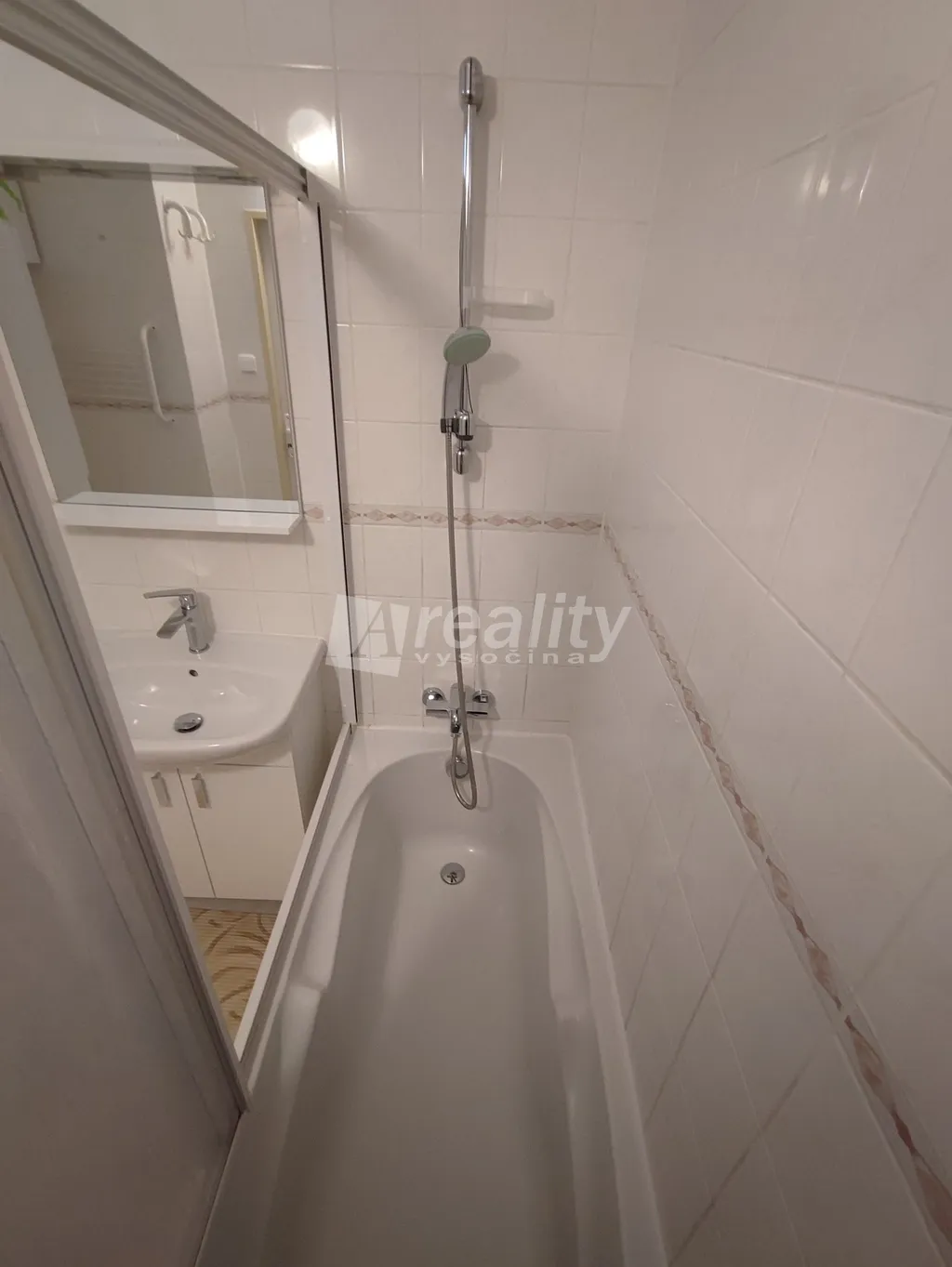 Z prostorné předsíně je vstup napravo na samostatné WC, dále do koupelny s vanou, umyvadlem a prostorem na pračku. Rovně se dostaneme do obývacího pokoje s jídelním koutem, ze kterého je vstup do kuchyně. Nalevo z předsíně se nachází dva menší samostatné pokoje, vhodné jako ložnice a dětský pokoj nebo pracovna.