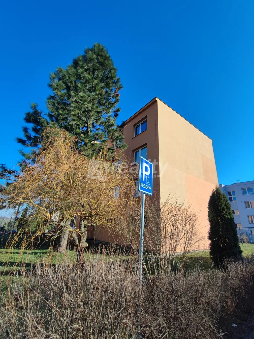 Byt je umístěn ve 4. nadzemním podlaží 4. panelového domu bez výtahu, který prošel kompletní revitalizací. Byt nemá balkon ani lodžii, k dispozici je však sklepní kóje. Ze společných prostor lze využívat kolárnu (kočárkárnu) a sušárnu v přízemí domu.