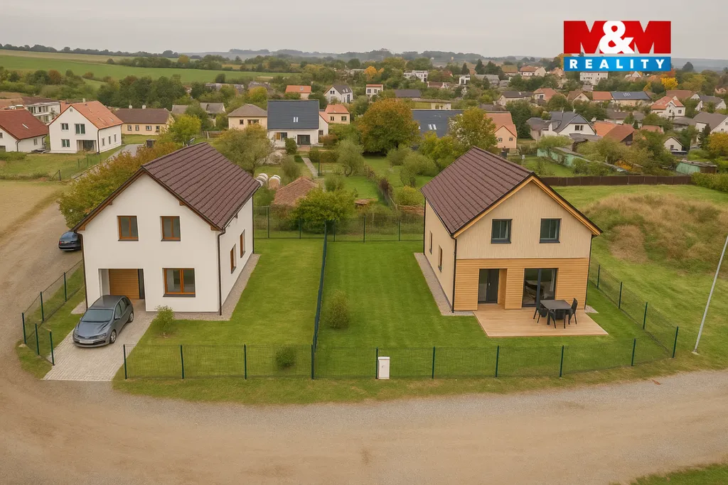 V nabídce jsou dva sousední pozemky vedle sebe, které lze zakoupit samostatně nebo společně, což je ideální varianta například pro rodinné bydlení, investici nebo vícegenerační projekt. Uvedený rodinný dům slouží pouze jako ilustrativní vizualizace.
