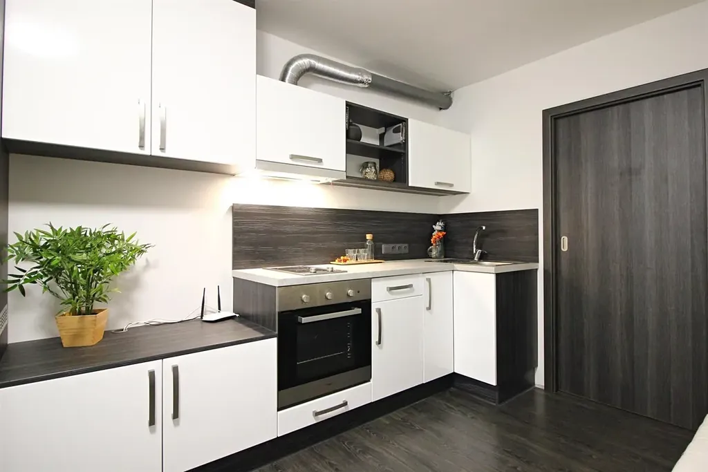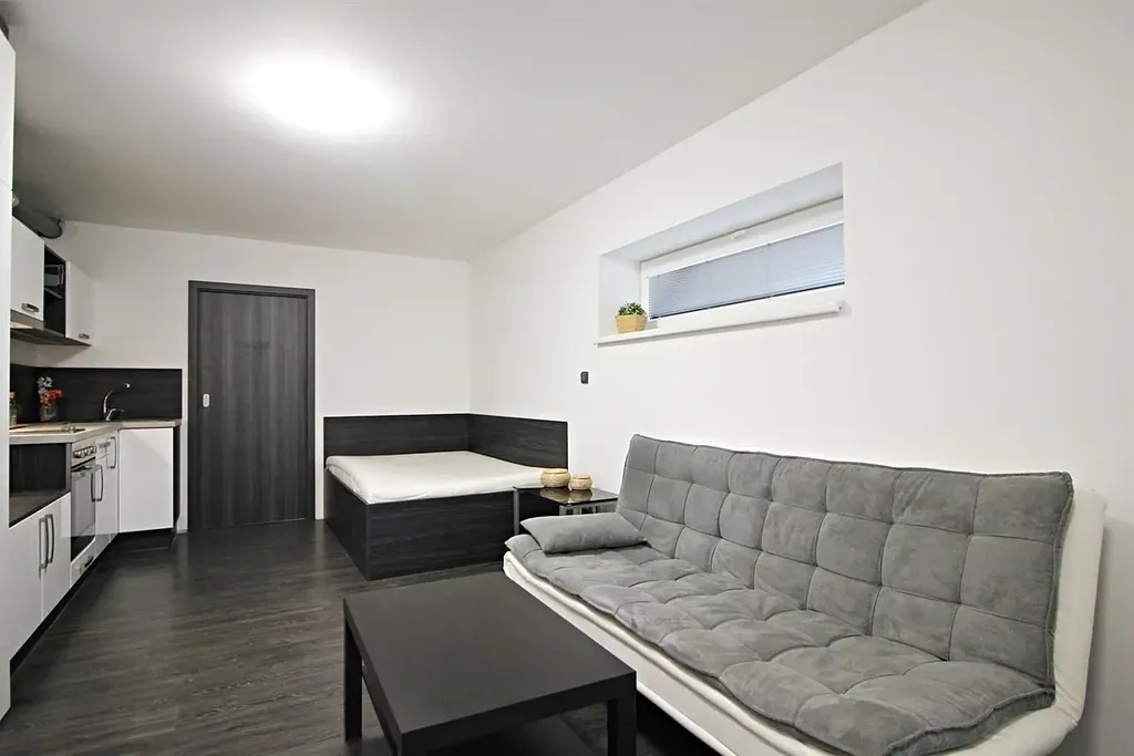Pronájem moderního bytu 1+kk v blízkosti Galerie Vaňkovka, na ulici Jeneweinova.