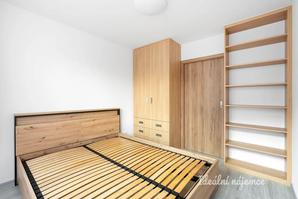 Tento byt je definicí světlosti a efektivního využití prostoru. Vestavěná skříň a úložná řešení po celém bytu jsou navržena tak, aby pojala vše potřebné, aniž by byt působil přeplněně. Srdcem bytu je obývací pokoj s pohodlnou pohovkou, pracovním stolem a přípravou pro závěsnou TV. Kuchyňský kout je oddělená a maximálně funkční. Vše máte doslova na dosah ruky – včetně moderních spotřebičů a myčky, která vám ušetří čas. Moderní koupelna disponuje sprchovým koutem a je plně vybavena pračkou i sušičkou. Velkým benefitem je samostatná toaleta, což u této dispozice nebývá vždy pravidlem.