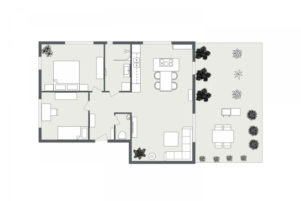 - v bytě je plně vybavená kuchyně, sladěná s ostatními dekory podlah a dveří. Dámy jistě ocení oblíbený ostrůvek s odsavačem par. Pánové ho ocení taky, ale ten důvod se možná bude trochu lišit. Zkuste a uvidíte. Ostatní vybavení už je na vás. Super je taky terasa, pro venkovní posezení nebo grilovačku,