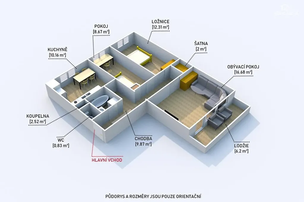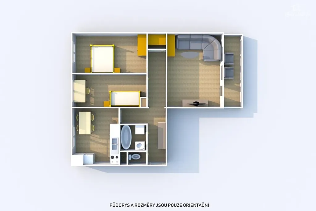 Dispozice bytu je prakticky řešená – samostatná kuchyně, obývací pokoj a dvě další místnosti nabízejí dostatek prostoru pro rodinné bydlení, práci z domova i dlouhodobý pronájem. Byt je vhodný jak pro vlastní bydlení, tak i jako investiční příležitost.