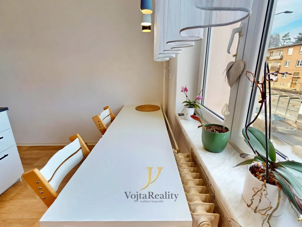Dispozice bytu nabízí prostornou vstupní chodbu s vestavěným botníkem, koupelnu se sprchovým koutem a toaletou, samostatnou kuchyni s jídelním stolem, obývací pokoj se vstupem na balkon a útulnou ložnici. Rozložení místností působí velmi prakticky a vzdušně.
