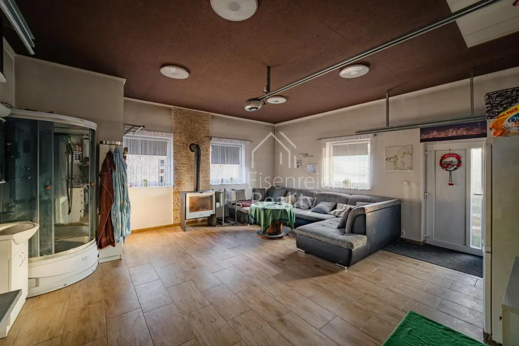 Součástí nemovitosti je garáž se zázemím o velikosti 35,6 m a navazující prostor pro letní posezení o výměře 28,8 m. Na zahradě se dále nachází útulný sklípek s posezením, ideální pro relaxaci i společenská setkání.