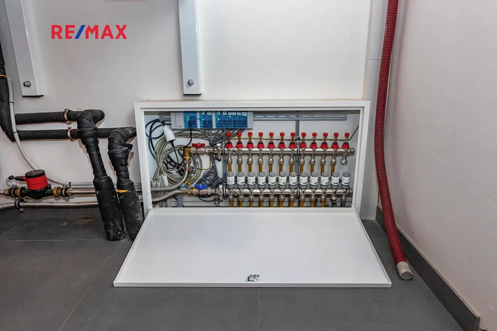 Součástí vybavení domu je podlahové vytápění, které zajišťuje rovnoměrné teplo v celém prostoru, a rekuperační systém, který neustále přivádí čerstvý vzduch do interiéru a zároveň šetří náklady na vytápění. Tyto prvky významně zvyšují kvalitu bydlení a zajišťují zdravé vnitřní prostředí.