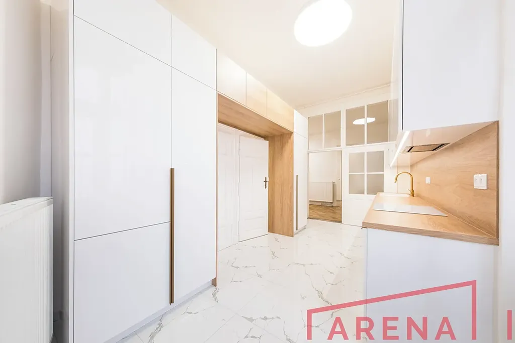 Interiér prošel citlivou renovací – nové parkety podtrhují noblesu vysokých stropů a velkých místností. Byt nabízí čtyři samostatné, nádherně světlé pokoje, které jsou neprůchozí, což zajišťuje maximální soukromí a komfort pro každého člena domácnosti. Dispozice bez průchozích místností je jednou z hlavních předností tohoto bytu a vyhoví jak rodinnému bydlení, tak kombinaci bydlení a práce z domova.